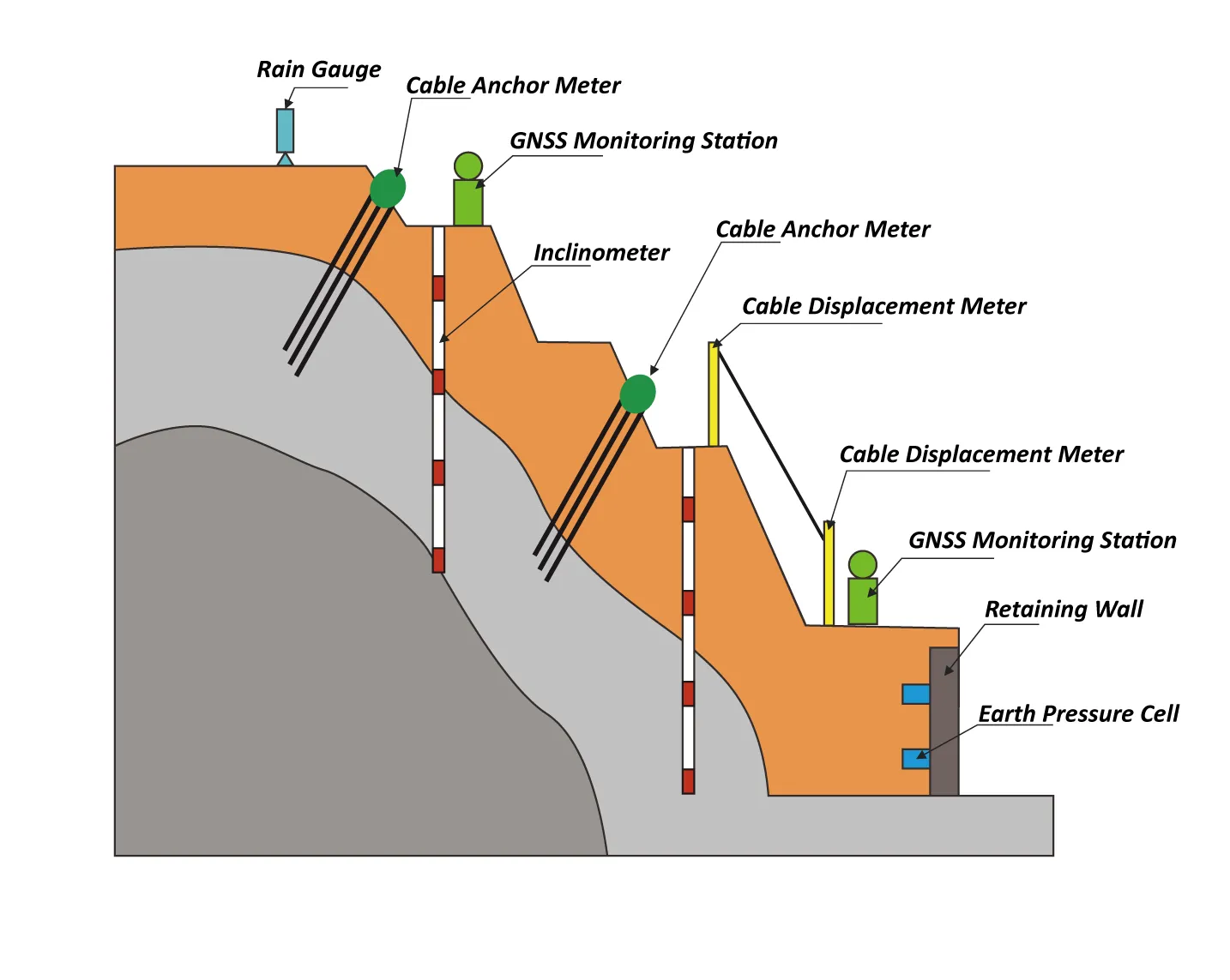 Naudodamas didelio tikslumo ir labai patikimus stebėjimo jutiklius, jis efektyviai stebi šlaitų stabilumą. Derinant stebėjimo duomenis ir makroskopinius deformacijos bei gedimo ženklus, atliekami išsamūs sprendimai, skirti nustatyti šlaitų konstrukcijų saugą ir stebėti laikančiųjų konstrukcijų laikomąją galią, eksploatacinę būklę, ilgaamžiškumą ir kt., kad būtų laikomasi saugaus eksploatavimo reikalavimų.